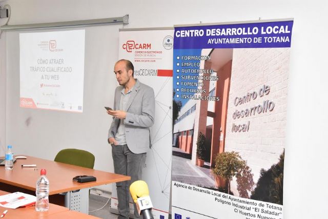 Unas sesenta y cinco personas han participado en el taller gratuito "Cómo atraer tráfico cualificado a tu web" que han organizado, de forma conjunta, la Concejalía de Desarrollo Económico del Ayuntamiento de Totana y la entidad Comercio Electrónico de la Región de Murcia (CECARM), en el Centro de Desarrollo Local de esta localidad.