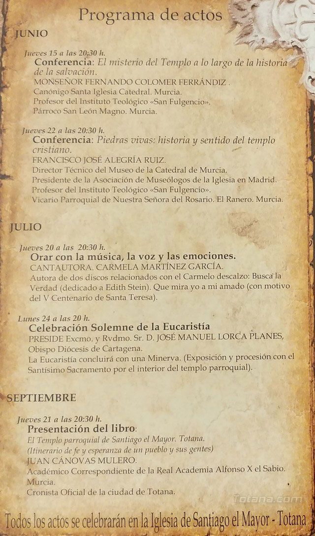 José Ruiz García, párroco de Santiago el Mayor de Totana, presenta las actividades que conforma el 450 aniversario de la dedicación del templo parroquial de Santiago (1567-2017)