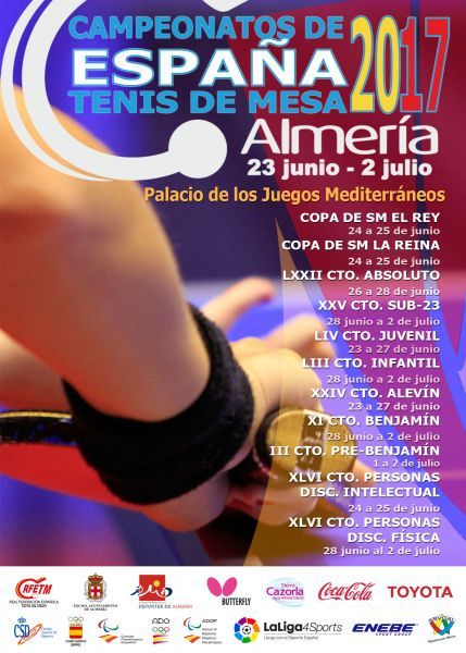 Mañana viernes 23 y hasta el domingo 2 de Julio se van a disputar los Campeonatos de España de Tenis de Mesa. El Palacio de los Juegos del Mediterráneo de Almería, donde ya están instaladas las 45 mesas con sus áreas de juego, acogerá la prueba más importante de la temporada para el tenis de mesa español en la que van a tomar parte más de 2.000 deportistas.
