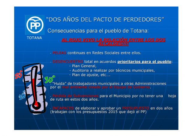 El PP resume los dos años del "pacto de perdedores" y sus consecuencias para el pueblo de Totana
