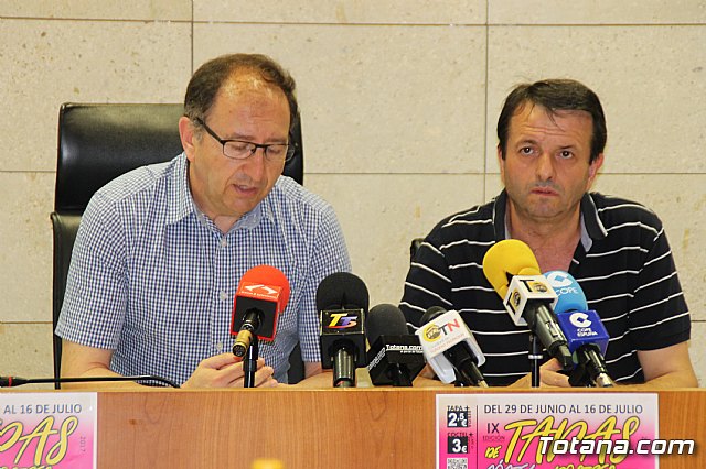 El concejal de Festejos, Agustín Gonzalo Martínez, y el representante de la Asociación de Empresarios de Hostelería de Totana (ASEMHOS), Agustín Escarabajal, presentaron recientemente esta nueva edición, de la que se han editado 4.500 folletos y ofrece atractivos premios.