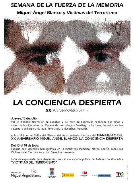 El Ayuntamiento de Totana va a celebrar la semana próxima, del 10 al 13 de julio, la denominada "Semana de la Fuerza de la Memoria" para conmemorar el vigésimo aniversario del secuestro y asesinato a manos de ETA del que fuera concejal de Ermua, Miguel Ángel Blanco, y con el objetivo de defender y mantener los valores de las víctimas del terrorismo y su dignidad.