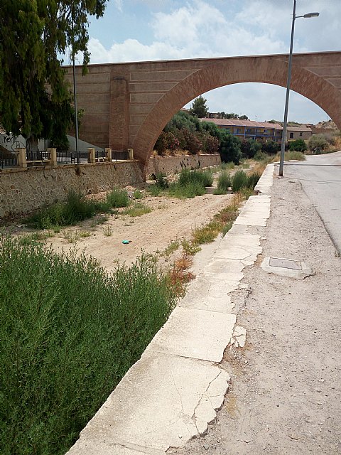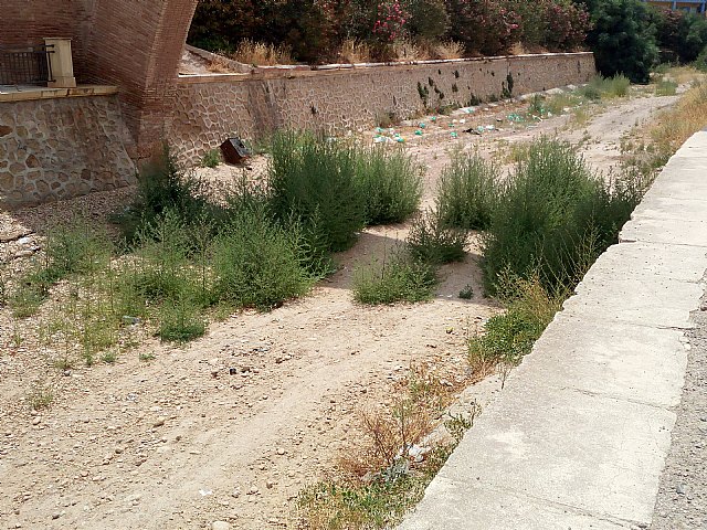 "Exigimos al Concejal de Servicios que se limpie la suciedad de la zona de las Ollerías y se retire la basura existente en el cauce de la rambla de la Santa en a su paso por dicho punto"