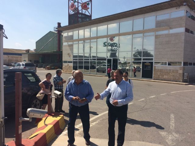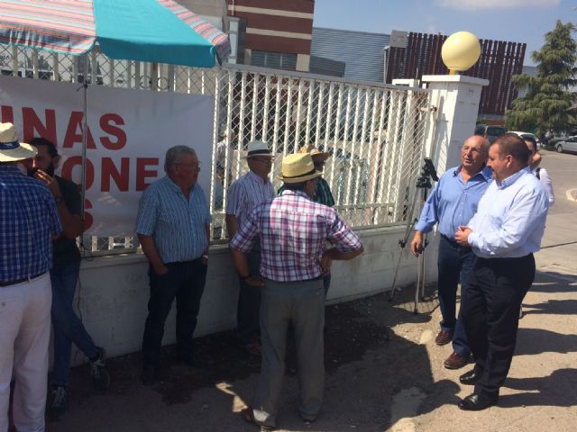 El alcalde de Totana, Andrés García, visitó hoy a los socios cooperativistas que llevan varios días concentrados a las puertas de la Cooperativa Agraria de Totana (COATO) con el fin de solidarizarse con su causa, al tiempo que se ha ofrecido a mediar con éstos y la propia empresa en el conflicto que mantienen para exigir tres millones de euros de las liquidaciones de la campaña de la almendra del año pasado.