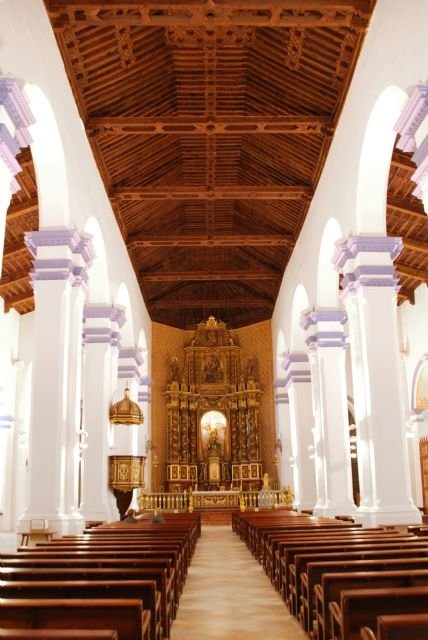 La esbeltez de sus pilares cruciformes, desde la elegancia de su desnudez, brindan la humildad del Dios de la entrega. La grandeza del artesonado mudéjar, el de mayor superficie de España, con su simbólica expresión de amparo, recuerda que la Iglesia, en la segura nave del Evangelio, conduce al encuentro con el Padre.