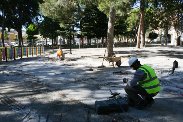 La Concejalía de Obras e Infraestructuras ha comenzado hace unos días las obras de mejora del área de juegos infantiles del parque municipal "Marcos Ortiz", que tienen un presupuesto de más de 80.000 euros y están financiadas en el marco del Plan de Actuación Regional de Dinamización de Obras y Servicios Municipales 2016 (PARDOS) de la Comunidad Autónoma de la Región de Murcia.