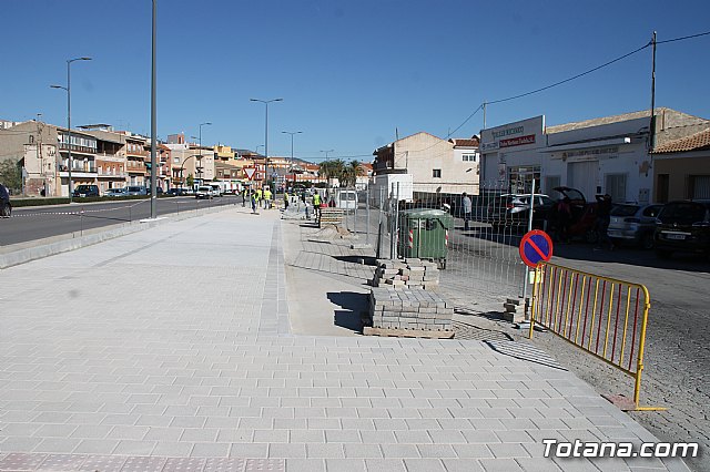 La Concejalía continúa acometiendo las obras de colocación y revestimiento de aceras en un tramo de más de 100 metros en la avenida Juan Carlos I, a la altura del barrio Tirol-Camilleri, con el fin de adecuar la travesía urbana.