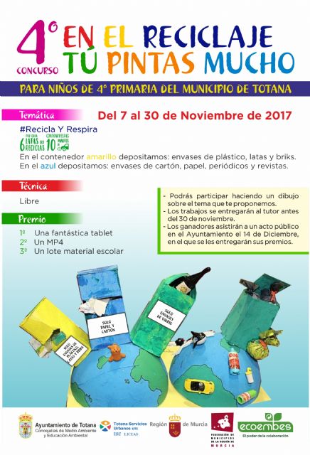 La iniciativa contempla dos actuaciones concretas mediante sendos concursos denominados "Recicla y gana" y "En en reciclaje, tú pintas mucho", que se han desarrollado con gran éxito en ediciones anteriores; y que en el primer caso va dirigido a la ciudadanía en general, y en el segundo, exclusivamente a escolares de 4° de Educación Primaria de los centros educativos del municipio de Totana.