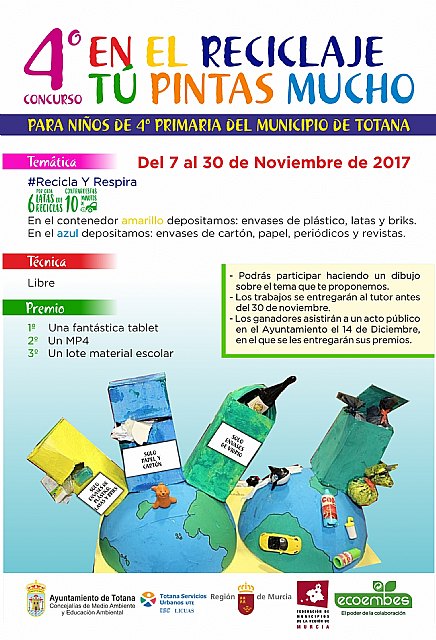 Escolares de 4º de Educación Primaria de los diferentes centros de enseñanza de Totana participan este año en el concurso “En el reciclaje, tú pintas mucho”, dentro de la campaña de información y sensibilización ambiental “Recicla y respira”.