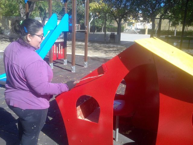 También se están arreglando espacios de juegos infantiles en los parques y jardines de la ciudad y las pedanías, así como la rehabilitación de juegos y reparación de bancos, como en el caso del parque municipal.