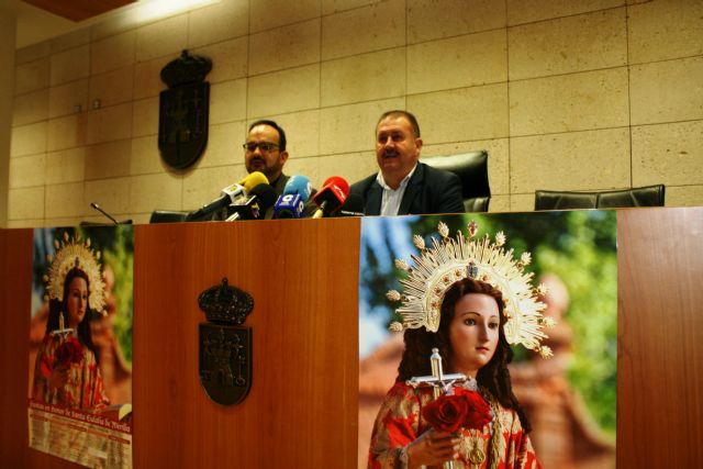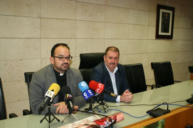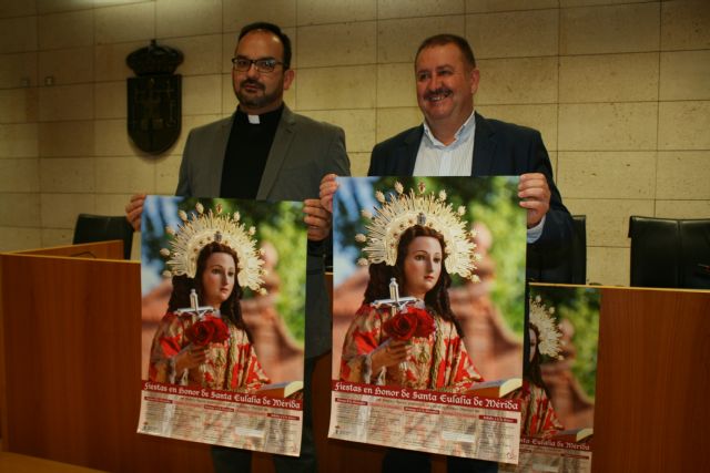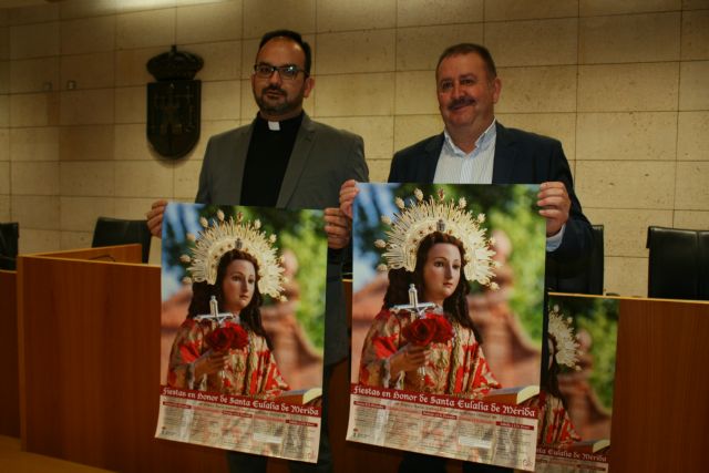 El alcalde y presidente de la Fundación La Santa, Andrés García, y el párroco de Santiago y vicepresidente de esta entidad, Francisco José Fernández, han presentado el programa de actos religiosos organizados con motivo de la celebración de las próximas fiestas patronales de Santa Eulalia, y que se concentrarán básicamente en el fin de semana del 8 al 10 de diciembre.