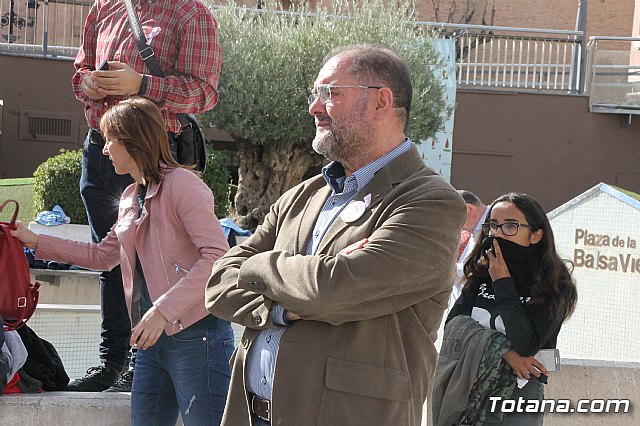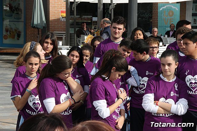 Alumnos y alumnas de Educación Secundaria de los diferentes centros de enseñanza de Totana formaron hoy un corazón humano en la plaza de la Balsa Vieja de esta ciudad para escenificar sus "latidos" contra la Violencia de Género, como colofón a las actividades de sensibilización que han celebrado durante estas semanas.