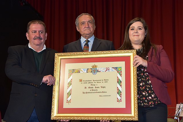 El historiador, investigador y escritor totanero Ginés Rosa López recibió anoche, en el transcurso de un acto institucional enmarcado dentro del programa de festejos patronales de Santa Eulalia, el Título de Hijo Predilecto de la Leal y Noble Ciudad de Totana, dando además nombre al teatro municipal del Centro Sociocultural “La Cárcel” de esta localidad.