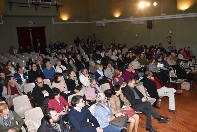 El alcalde, Andrés García, y la concejal de Archivo Histórico y Patrimonio, Inmaculada Blázquez, hicieron entrega a Ginés Rosa del pergamino conmemorativo que reconoce su vinculación con el ámbito de la cultura y la historia de Totana. El mismo contó con numerosos miembros de la Corporación municipal y representantes de las asociaciones culturales y sociales del municipio.