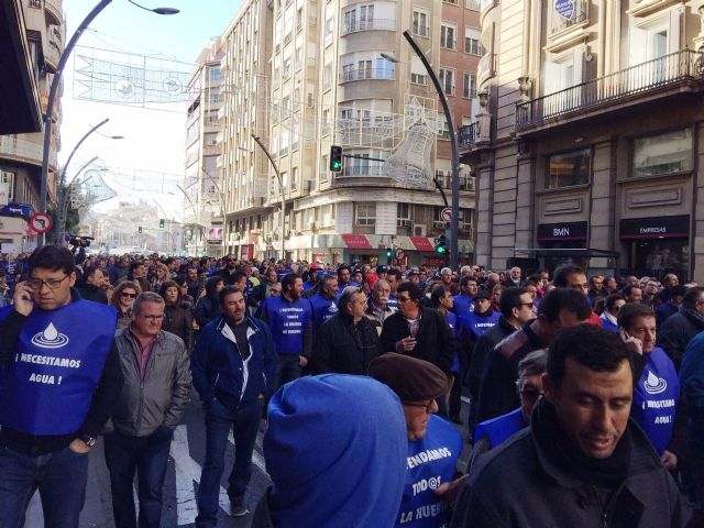 La protesta masiva ha servido para denunciar la inacción del Ejecutivo nacional. Miles de agricultores y regantes de la Región de Murcia, Alicante y Almería se manifestaron en la capital murciana para exigir soluciones ante la falta de agua y han asegurado que no dejarán de protestar, hasta que haya una solución definitiva y a largo plazo para ese problema.