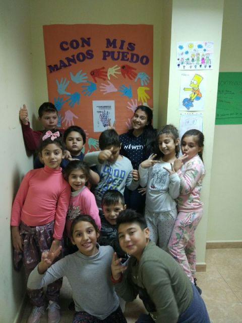 Los niños y niñas participantes de las actividades de refuerzo y ocio educativo trabajaron esta temática realizando un taller denominado “Con mis manos puedo…”. Los menores dibujaron las siluetas de sus manos, las decoraron con detalles propios y escribieron aspectos positivos que pueden hacer con ellas como; acariciar, mimar, mandar besos…Finalmente con todas las manos elaboraron un lazo de color morado, en conmemoración del día contra la violencia de género. Este recurso donde se desarrollan actividades de refuerzo educativo y ocio y tiempo libre con menores del municipio de Totana, se enmarcada dentro del Programa de Intervención Socioeducativa con Familias y Menores en Situación de Desventaja Social, subvencionado por la Consejería de Familia e Igualdad de Oportunidades de la Comunidad Autónoma de la Región de Murcia en colaboración con el Ayuntamiento y los centros educativos del municipio.
