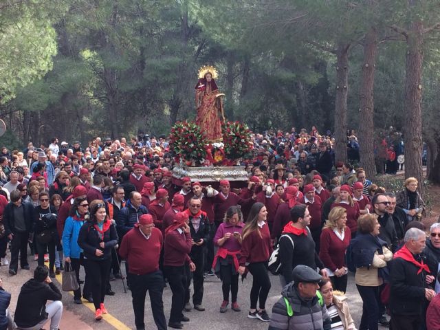 La Patrona de Totana, Santa Eulalia de Mérida, ha regresado a su santuario en Sierra Espuña rodeada por miles de personas, después de haber permanecido durante más de un mes en esta ciudad coincidiendo con las fiestas patronales y la Navidad.