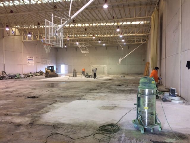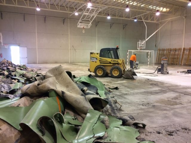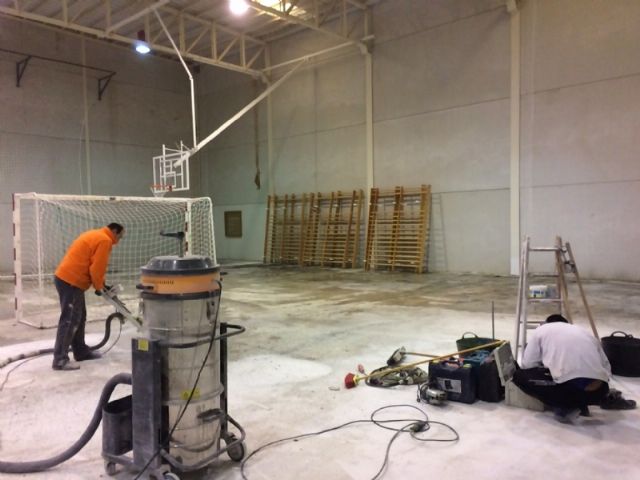 La Concejalía de Deportes del Ayuntamiento de Totana está acometiendo durante estos días obras de sustitución del pavimento de la Sala Escolar en El Paretón-Cantareros, ubicada en el Complejo Polideportivo "Valle del Guadalentín" y junto al colegio de esta pedanía, con el fin de mejorar esta infraestructura deportiva y acondicionarla a la práctica de multideporte.