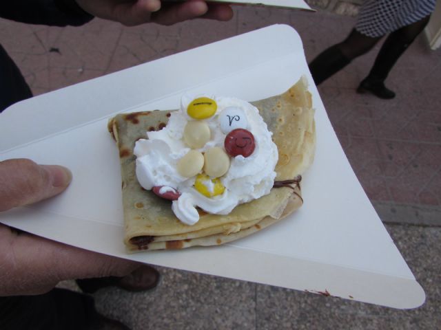 Este año el IES «Prado Mayor» le ha tomado el relevo al IES «Juan de la Cierva» en cuanto a la venta de estos manjares, y como cada año, desde el curso 2014/15, los alumnos visten uniformados y entregan crêpes al impaciente público, alumnos y profesorado del centro totanero. Estos crêpes son elaborados por los propios alumnos y se sirven calientes con motivos dulces o salados, a gusto del consumidor.