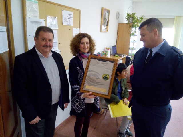 El comandante del Escuadrón Aéreo de Sierra Espuña número 13, Juan Carlos Giz Paz, acompañado por el alcalde de Totana, Andrés García, han realizado recientemente una visita al Centro de Día para Personas con Discapacidad Intelectual "José Moyá" con el objetivo de agradecer la partición del Centro en la realización de los trofeos que se entregaron en el III Trail Dragón Challenge 2017 "Memorial Subteniente Juan Carlos Pérez Calleja".