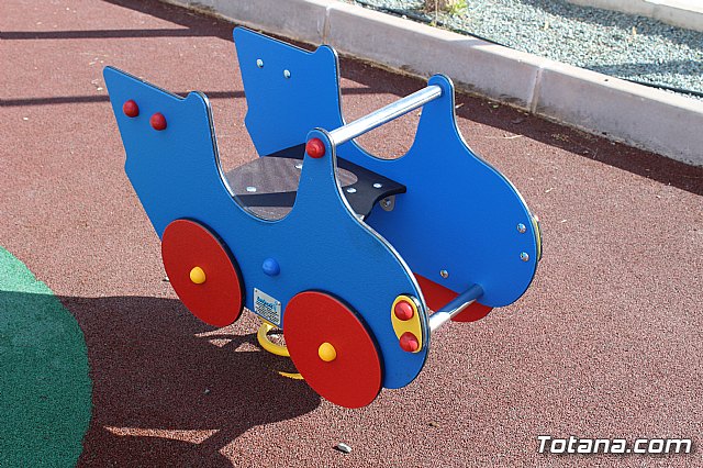 Así pues, se ha instalado una superficie amortiguadora sobre caucho, varios juegos saludables (paseo, surf, norias y pedales para banco) y nuevos juegos infantiles, como un columpio biplaza, juego de casita elevada, muelle dinámico y un cartel informativo sobre el adecuado uso de las instalaciones.