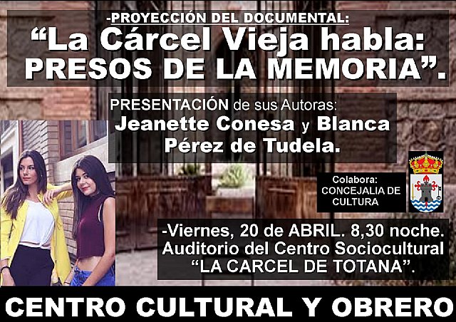 Dos jóvenes estudiantes de periodismo, Jeanette Conessa y Blanca Pérez de Tudela presentan en Totana su documental "La Cárcel vieja habla: Presos de la memoria".