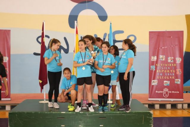 El pasado sábado 19 de mayo se celebró en San Javier la Final Regional de Futbol Sala Alevín Femenino de Deporte Escolar, organizada por la Dirección General de Deportes de la Región de Murcia, donde el Colegio La Cruz se proclamó campeón regional tras derrotar en la final al Colegio Luís Costa de Murcia, por un apretado marcador de dos goles a uno.