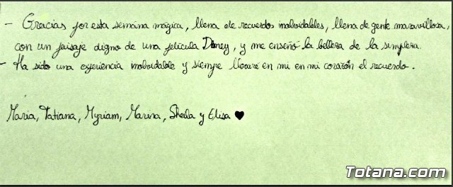 "Tras la comida comenzaba nuestro proyecto de centro en el que aprendimos sobre compostaje de residuos, especialmente de los que producimos en nuestro hogar y sobre el compostaje emocional trabajando el enfado, para ir aprendiendo a manejarnos con él, pasando de ser un “enemigo”, a ser nuestro aliado. Tras el proyecto, a merendar, cinco ricas comidas degustábamos diariamente. A media tarde nos tocaba un rato en el Bar Angelito, en el que comenzábamos a preparar la fiesta nocturna. Las noches fueron amenizadas con historias de miedo en la iglesia del pueblo, concursos y bailes en la discoteca, cena en el castillo y ceremonias con celebraciones en las que todos éramos personajes de una historia. Compartimos la semana con nuestros compañeros, con todo el personal responsable del proyecto de Granadilla, con dos Institutos de Educación Secundaria de Granada: La Madraza y Ribera del Fardes, siendo una experiencia que nos ha enriquecido como personas, incrementando la motivación por conocer, cuidar y aprender del mundo en el que vivimos".
