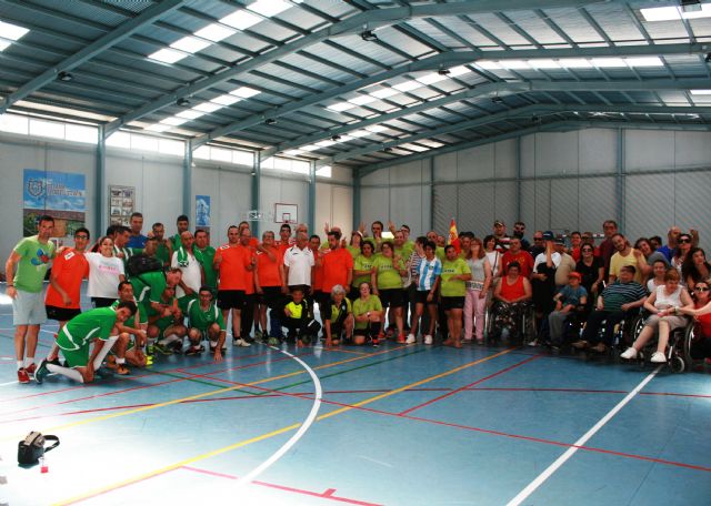 Usuarios de los diferentes centros de discapacidad de la Región de Murcia, en este caso, APANDIS de La Hoya (Lorca), AIDEMAR de San Javier y el Centro de Día Personas con Enfermedad Mental "José Moya" de Totana participaron, por cuarto año consecutivo, en una jornada deportiva de convivencia en el Pabellón de Deportes "Padres Capuchinos" del Polideportivo Municipal "6 de Diciembre", disputando una competición de fútbol sala y diferentes concursos.