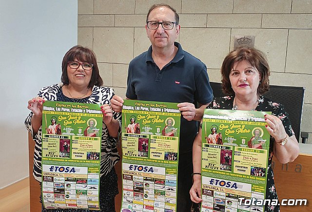 El concejal de Festejos, Agustín Gonzalo Martínez, junto con la vicepresidenta de la Asociación de Vecinos del barrio, Conchi Martínez, y la vocal de dicha entidad, Isabel Martínez, han presentado el programa de las fiesta de San Juan y San Pedro de dicho barrio.
