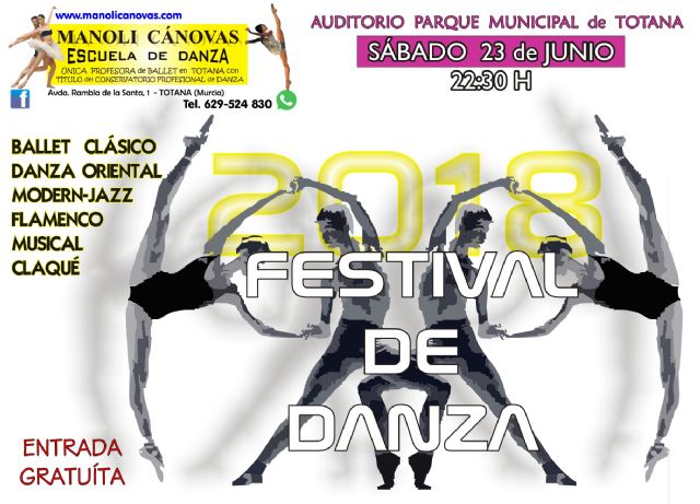 Mañana sábado 23 de Junio a las 22:30 h la Escuela de Danza Manoli Cánovas celebrará su Festival de Danza en el Auditorio del Parque Municipal "Marcos Ortiz".