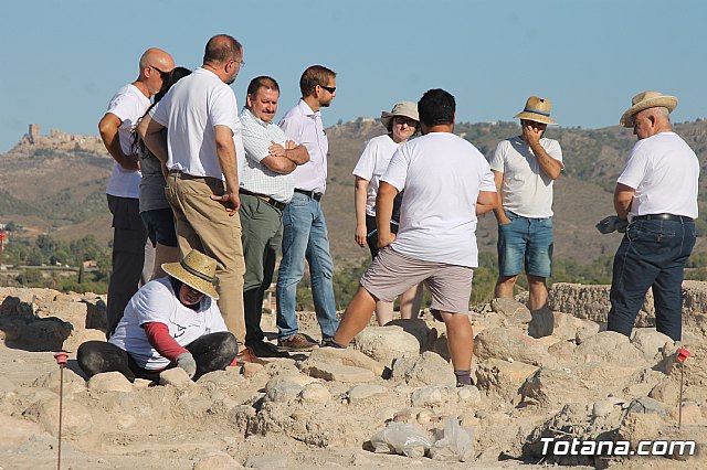 El alcalde, Andrés García, acompañado por el primer teniente de alcalde y responsable de Yacimientos Arqueológicos, Juan José Cánovas, y los concejales de Juventud y Urbanismo, Inmaculada Blázquez y Carlos Ballester, han visitado, como en ediciones anteriores, esta actividad con el fin de conocer el trabajo de campo que vienen realizando desde el pasado 23 de julio estos jóvenes.