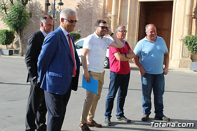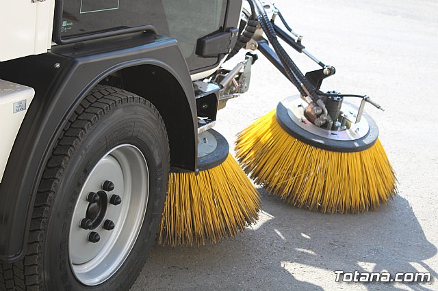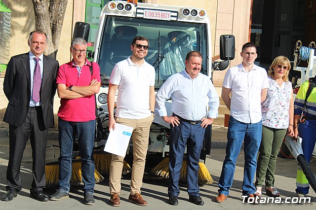 El alcalde, Andrés, García, y los concejales de Servicios a la Ciudad y Residuos Sólidos Urbanos (RSU), Víctor Balsas y Antonia Camacho, acompañados por los directivos de la adjudicataria de dicho servicio, han dado cuenta de las características técnicas de la nueva maquinaria que han sido presentada a las puertas del Consistorio totanero, en la plaza de la Constitución.