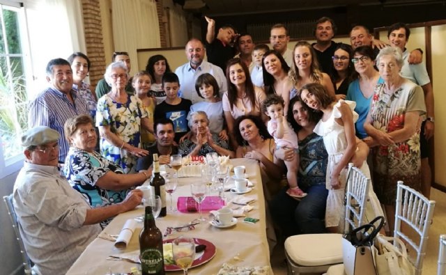Juana Pérez Martínez o como cariñosa mente la conocen en su familia, la “Mañe Juana”, superó el centenario el pasado 13 de agosto, siendo la decimo tercera persona que tiene más de 100 años en el Municipio de Totana. De las que 11 son mujeres y dos, hombres.
