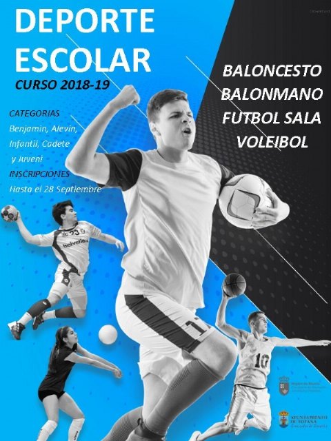 La Concejalía de Deportes pondrá en marcha durante el viernes 5 de octubre el programa de Deporte Escolar correspondiente al curso escolar 2018/19, en colaboración con los centros de enseñanza, clubes deportivos de Totana y la Dirección General de Deportes de la Región de Murcia.