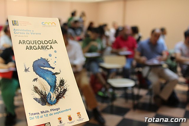 La sala municipal de exposiciones “Gregorio Cebrián” de Totana acogió hoy el acto oficial de inauguración del curso “Arqueología Argárica”, que organiza la Universidad Internacional del Mar de la Universidad de Murcia (UMU), que albergará junto con los municipios de Pliego y Mula hasta el próximo miércoles.
