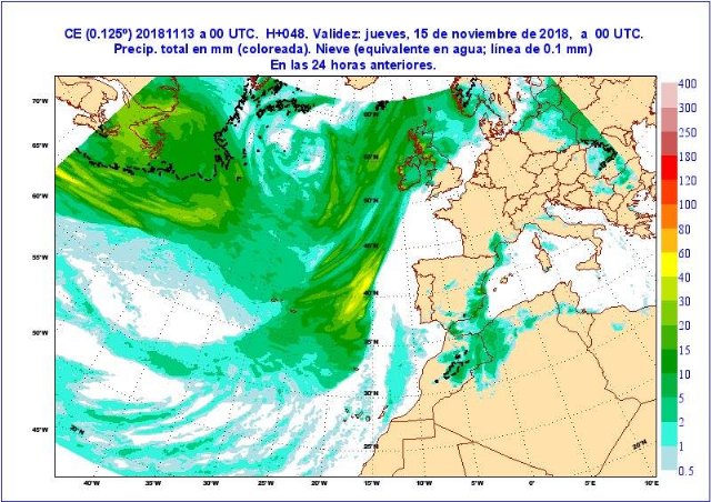 Un potente anticiclón sobre el centro y norte de Europa bloqueará las borrascas que vienen por el océano Atlántico, haciendo que éstas se desplacen más al sur de lo que suelen hacerlo, produciendo así lluvias en el sur y este de la península Ibérica. Será una situación persistente, por lo que la posibilidad de lluvias se alargará durante bastantes días.