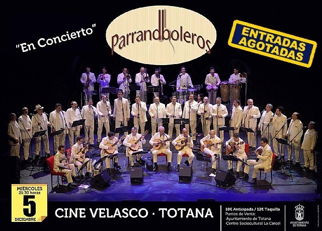 La Concejalía de Festejos informa que desde ayer están agotadas las entradas para la actuación musical del grupo “Los Parrandboleros” que se celebra esta noche (21:30 horas) en el Cinema Velasco dentro del programa de actividades musicales de las fiestas patronales de Santa Eulalia.