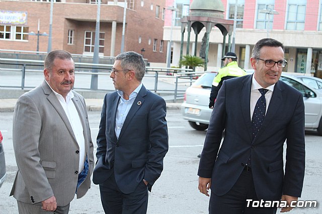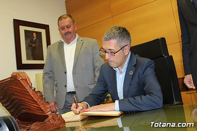 El secretario de Estado, que firmó protocolariamente en el Libro de Oro de la Ciudad de Totana, también estuvo acompañado por los presidentes de la Mancomunidad de Canales del Taibilla, Francisca Baraza, el de la Confederación Hidrográfica del Segura, Mario Urrea, y numerosos diputados regionales del PSRM-PSOE y altos cargos de la Delegación del Gobierno, así como miembros del Gobierno municipal.