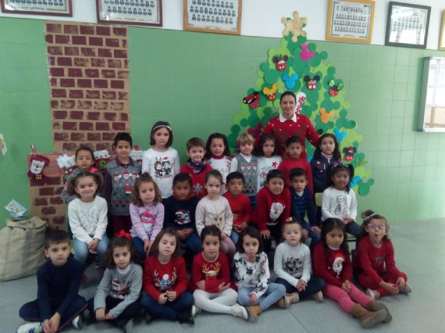 Así, jerséis con renos, copos, muñecos de nieve, árboles de navidad…. han inundado el centro iniciando de este modo el espíritu navideño en el CEIP La Cruz de Totana.