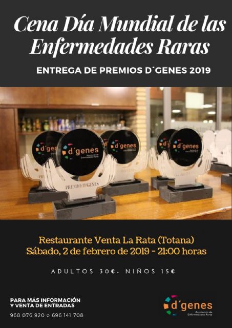 La Asociación de Enfermedades Raras D´Genes entregará sus galardones anuales en el transcurso de la Cena Gala Día Mundial de las Enfermedades Raras, que tendrá lugar el próximo 2 de febrero en Totana.