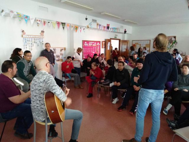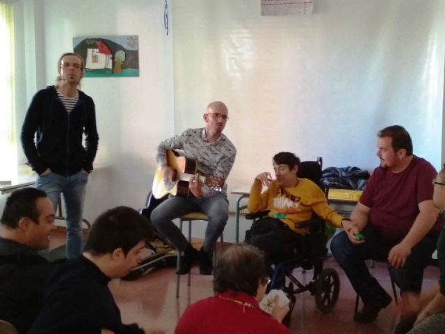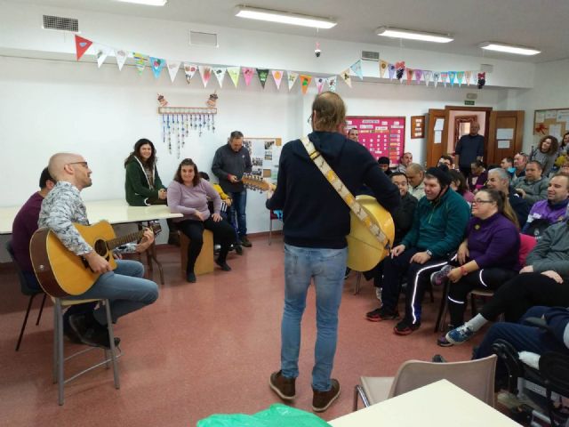 Miembros del grupo musical totanero "La Calle del Silencio" ha visitado recientemente los Centros de Día para la Discapacidad del Ayuntamiento de Totana, dentro de las actividades promovidas para interactuar con los usuarios y usuarias de ambos centros y favorecer su autonomía personal y social.