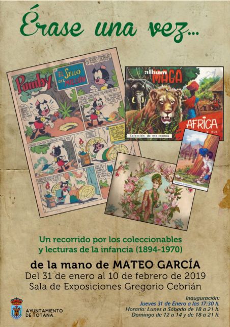 La Concejalía de Cultura inaugura este próximo jueves, 31 de enero, a partir de las 17:30 horas, la exposición que lleva por título "Érase una vez…Un recorrido por los coleccionables y lecturas de la infancia (1894-1970), del cronista emérito y periodista Mateo García.