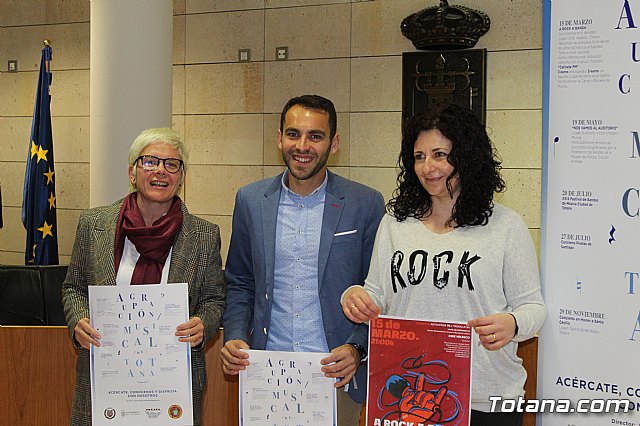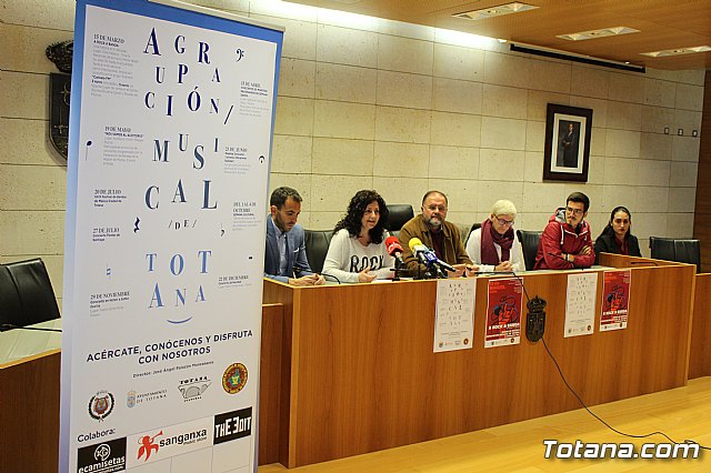 El primer teniente de alcalde, Juan José Cánovas, la concejal de Cultura, Eulalia Moreno, el director de la Banda de la Agrupación Musical, José Ángel Palazón, la vicepresidenta de la Junta Directiva, Blasi Montes, y los músicos Fran Cánovas y María Corbalán presentaron el elenco de actividades.
