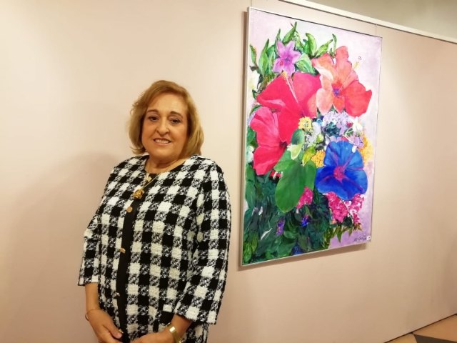 Autoridades municipales del Ayuntamiento de Totana inauguraron hoy la exposición de pintura de María José García Sánchez, instalada en  la sala municipal "Gregorio Cebrián" hasta el próximo 20 de marzo.