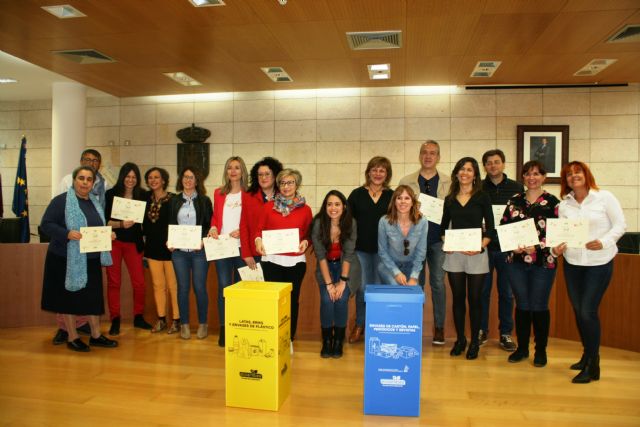 Las concejalas de Sanidad Ambiental y Medio Ambiente y RSU, Isabel María Molino y Antonia Camacho, entregaron hoy los diplomas acreditativos a los 13 centros de enseñanza de Totana que han participado en el proyecto "Red Educa en Eco" durante el curso 2017/18, un programa educativo promovido por Ecoembes y las consejerías de Educación y Medio Ambiente de la Comunidad Autónoma.