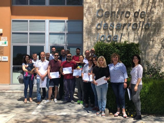 Los concejales de Desarrollo Económico, Fomento y Empleo, Juan José Cánovas y Antonia Camacho, han hecho entrega recientemente, en el Centro de Desarrollo Local, de los diplomas de los cursos de "Limpieza de espacios abiertos e instalaciones" y "Montaje y mantenimiento de instalaciones eléctricas de baja tensión", respectivamente.