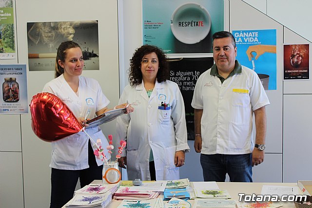 El Centro de Salud de Totana ha instalado hoy una mesa informativa en la entrada al centro para concienciar y sensibilizar a la población sobre los beneficios de abandonar el consumo de tabaco, coincidiendo con el día Mundial sin tabaco que se conmemora hoy 31 de mayo.