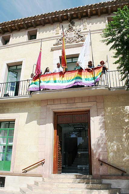 El alcalde, Juan José Cánovas, acompañado por corporativos municipales, y representantes del Consejo Municipal de Igualdad colocaron hoy, en un sencillo acto simbólico, la bandera LGTBI, que se exhibe por quinto año consecutivo.