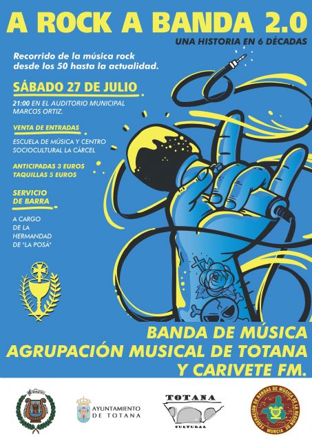 Además, la otra actividad tendrá lugar el sábado 27 de julio, a las 21:00 horas con el Concierto "A rock a banda 2.0.", con la participación de la Banda de Música de la Agrupación Musical de Totana y el Grupo Carivete FM.